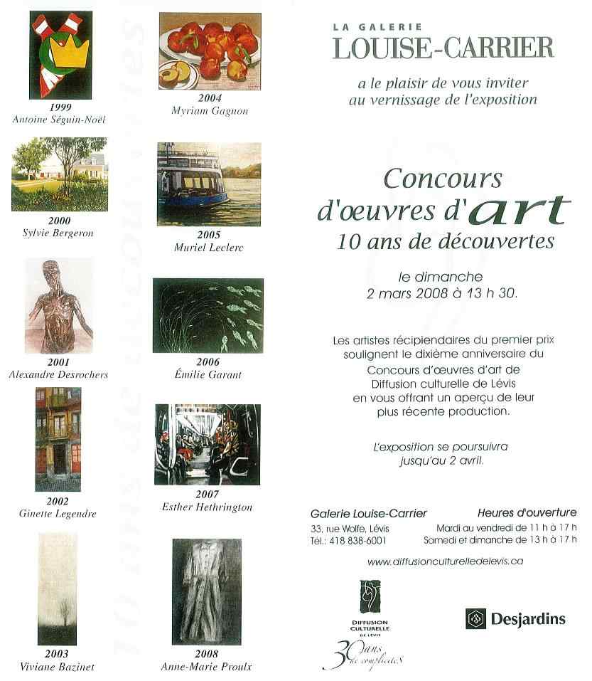 Remis le 28 janvier 2004 à la Galerie Louise-Carrier de Lévis.