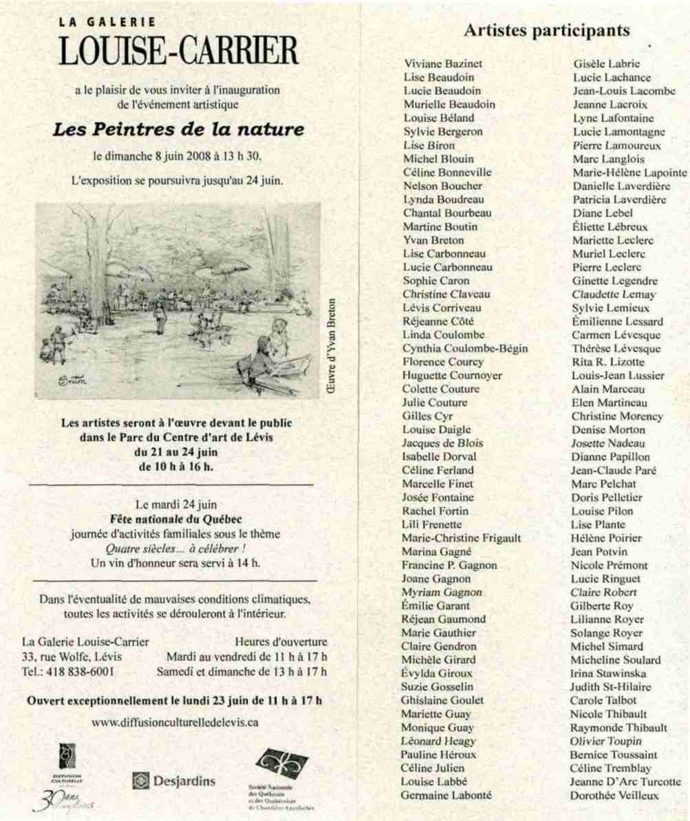 Les peintres de la nature, juin 2008 . Le mardi 24 juin Fête nationale du Québec journée d'activités familiales sous le thème : Quatre siècles...à célébrer !