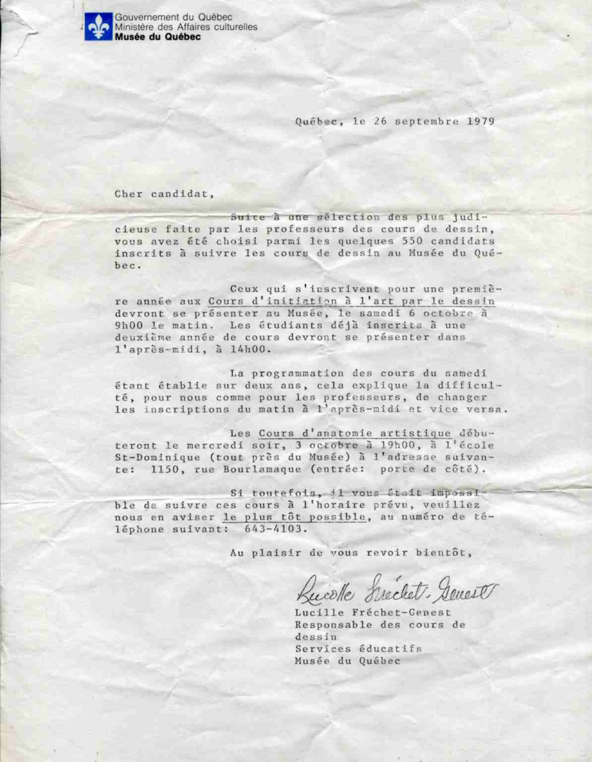 Participation à des ateliers de dessin au Musée national des Beaux-Arts du Québec (Musée du Québec) en 1979